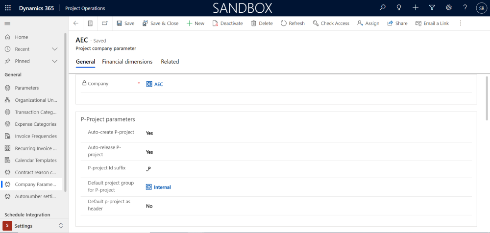 | Auto-release P-project | If this parameter is set to Yes, then it will automatically release and sync P-project to Finance and Operations. If this parametr is set to No, a button will be available at opporunities form to release. |
