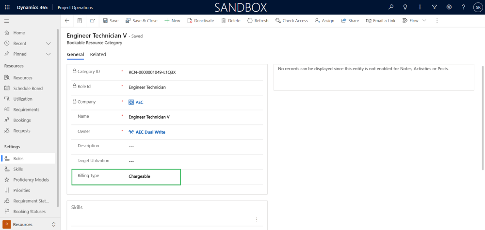 As part of this enhancement when-ever a new role is created in Finance and Operations, the role integrated to the Project Operations will always be having ‘Billing Type’ as ‘Chargeable’ by default.