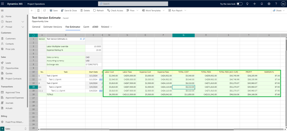 The Fee Estimator will help users to define project estimates and budgets for different phases. They can switch between versions to build estimates in one place and make changes easily in the Fee Estimator Spreadsheet. It ensures all estimates are stored in Dataverse for future reference and can be used during project execution.Overall, this new functionality will make the estimating process more efficient and organized for Sales Team.