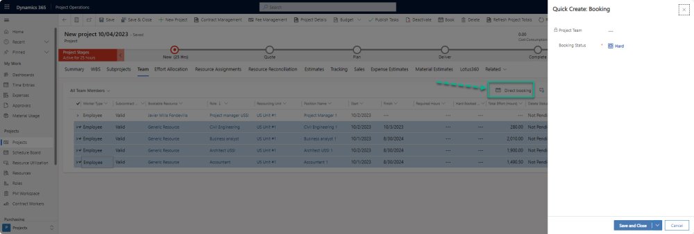 This new feature provides the ability to generate booking directly from the “Team members” tab in the “Project” form.