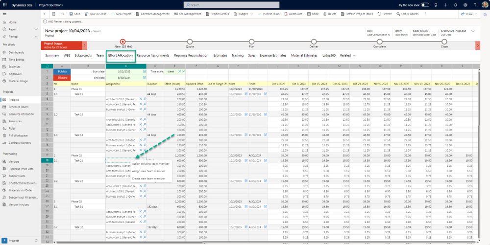 - The enhanced experience will allow users to maintain Tasks, Team members and Effort assignments directly from the same “Effort allocation” screen.