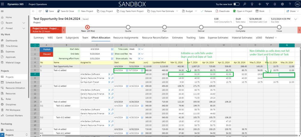 - Data will be synced to Finance and Operations from Project Operations as soon as modifications are made for above editable fields.