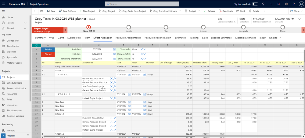 - This new feature is currently available for WBS planner, Effort allocation and Fee Estimator.