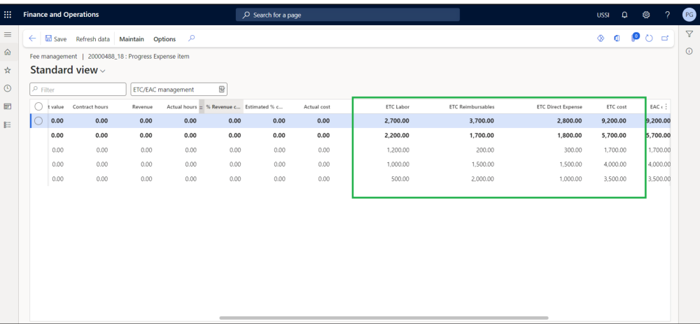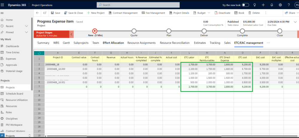 The following modifications were made for ‘ETC/EAC management’ tab in Project form.