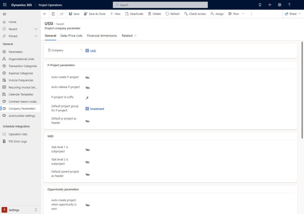 | Auto-release project when opportunity is won | If you set this parameter to “Yes,” it will automatically release and synchronize the P-project with Finance and Operations. If you set it to “No,” a button will appear on the Opportunities form, allowing you to manually release the P-project. |