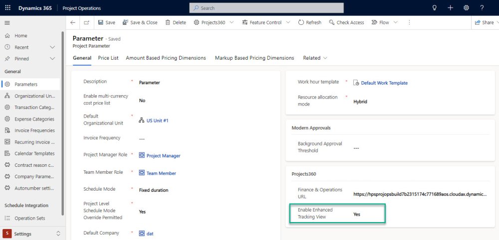 This feature can be enabled from ‘Parameters > General > Projects360 parameters > Enable Enhanced Tracking View’.