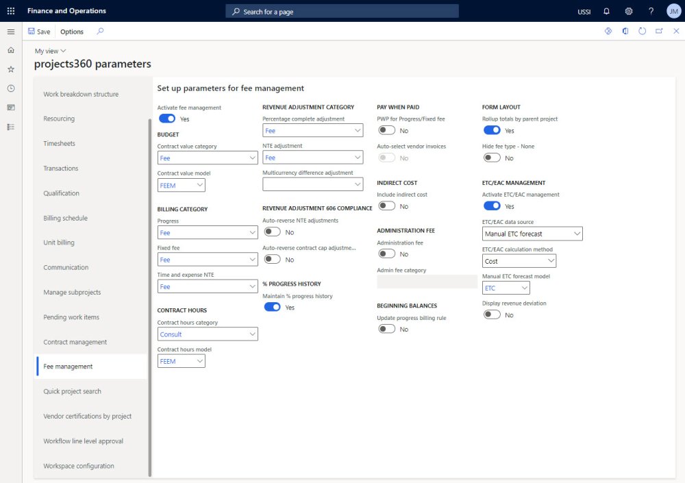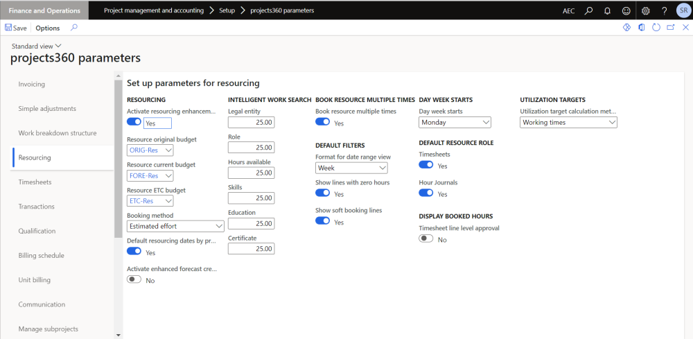 There are no specific settings for Project Operations in the “projects360 parameters”. However, features such “Resourcing”, “Contract management” and “Fee management” should be activated and configured.