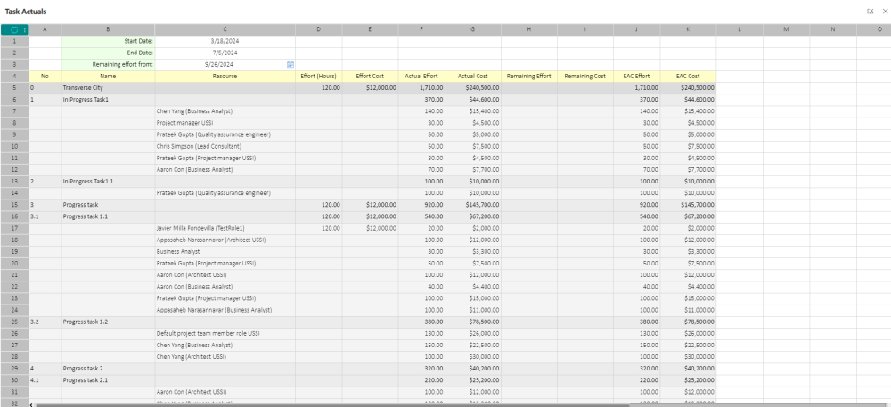 - Users can access this feature through the WBS Planner and the Effort Allocation contextual menu. By selecting the ‘Task Actuals’ option, they are directed to the new xl360 view.