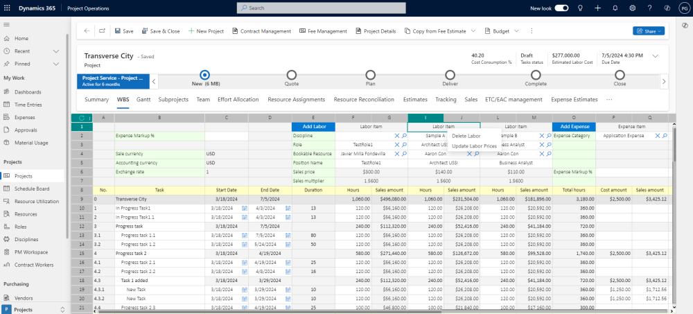 The sales and cost prices of roles and resources in the WBS adjust dynamically based on values from contract price lists, which define role prices for different time periods. Depending on the task’s start and end dates, the system automatically applies the applicable price during that period. This ensures that the WBS provides accurate cost and sales calculations based on real-time pricing, offering better financial insights.