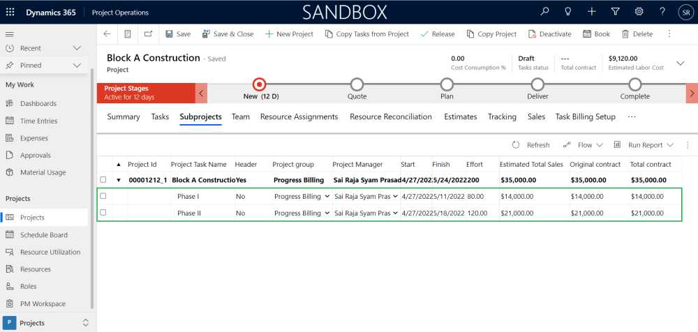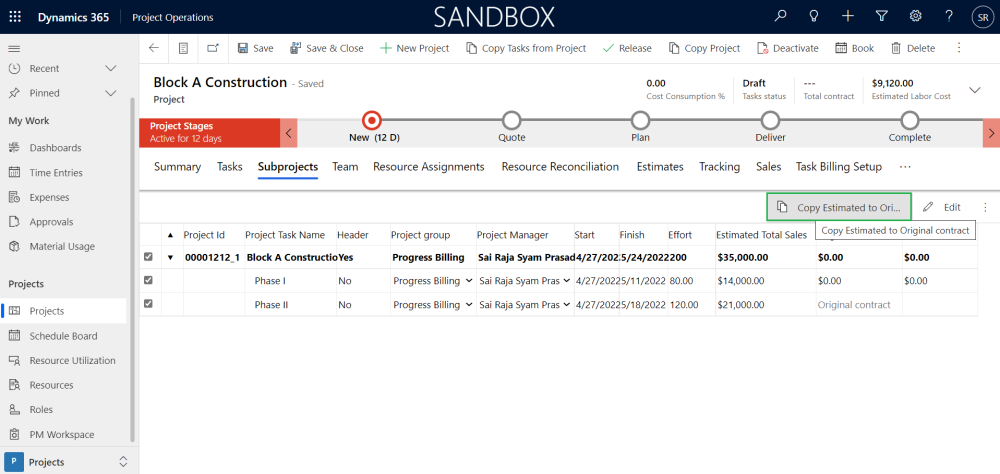 A new “Copy Estimated to Original Contract” button on the Subprojects tab automates the allocation of the “Estimated Total Sales” value to the “Original Contract” field for each subproject. This action triggers the creation of agreement distributions upon project release. Users can either select the header project and apply the copy function to all subprojects simultaneously, or they can selectively apply it to individual subprojects as needed..
