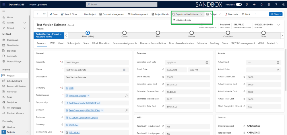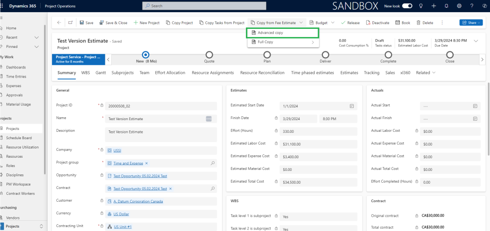 - The Advanced Copy functionality allows users to copy tasks from the fee estimate to the WBS even after the project has been released to F&O.