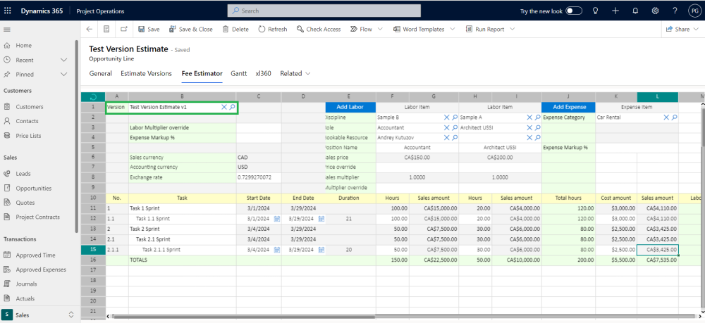 Fee Estimates allow users to copy them into the Work Breakdown Structure (WBS). This feature proves useful as estimates are typically generated before a potential customer becomes a confirmed client. Moreover, each version displays the total estimated cost, sales price, and the variance between them directly within the WBS Planner interface. What sets this tool apart is its flexibility, enabling users to choose any version at any stage of the project to plan, track, and manage resource allocation.