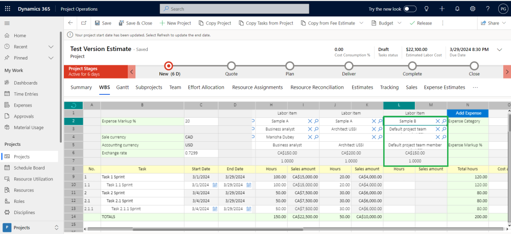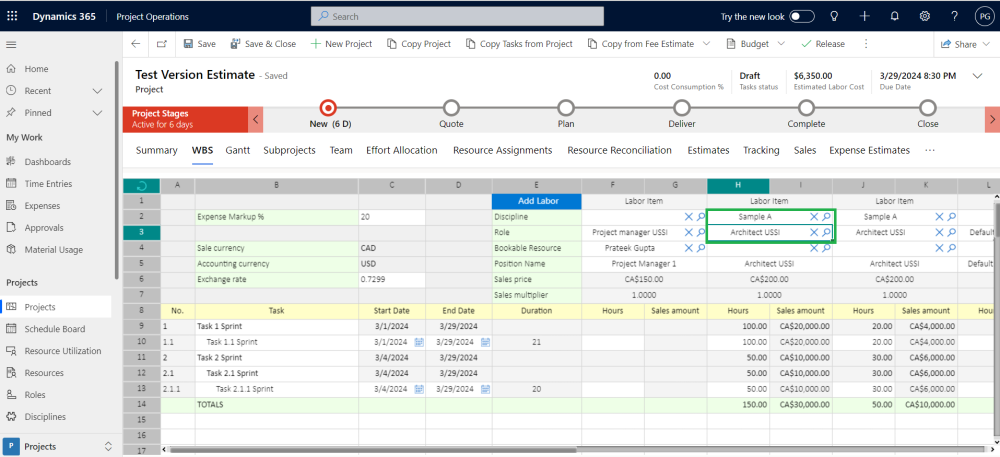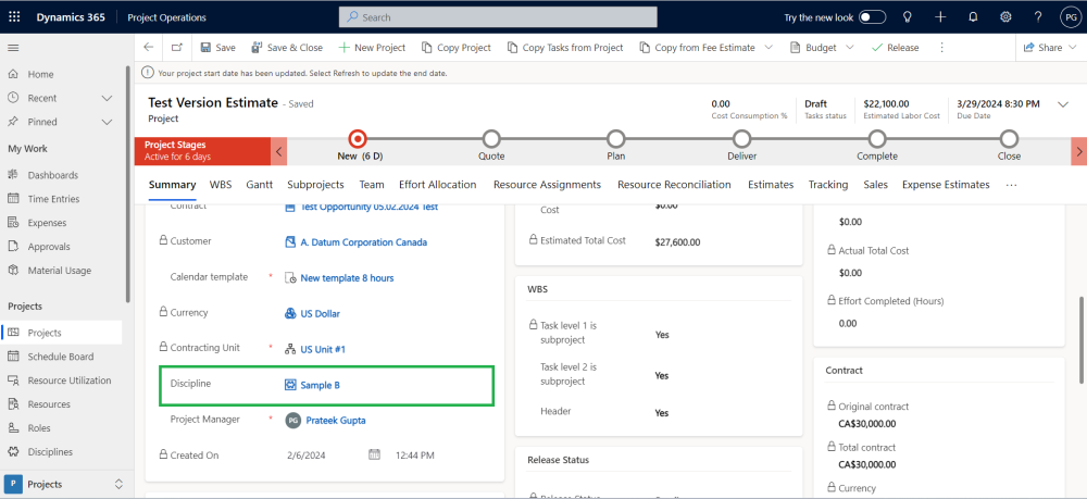 - When you assign a “Bookable Resource” to a task in the WBS, the “Discipline” field automatically gets populated. Their role, position, and Sales price will also be automatically populated.