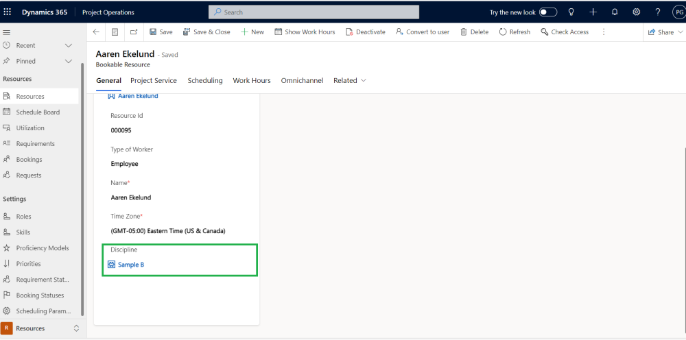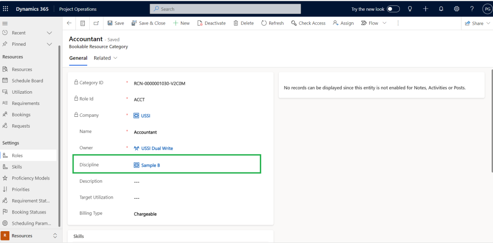 A new entity named “Disciplines” is now accessible in Project Operations.