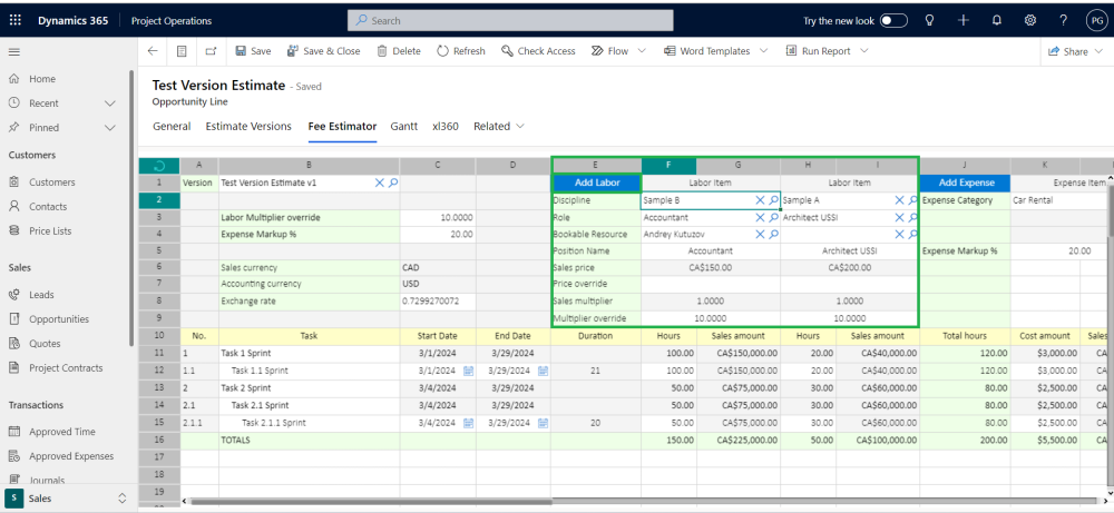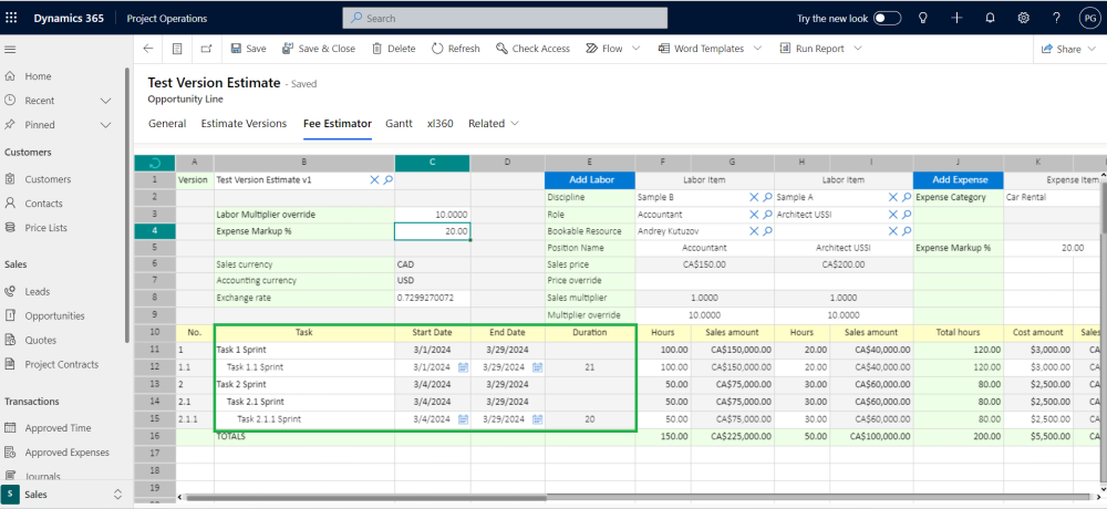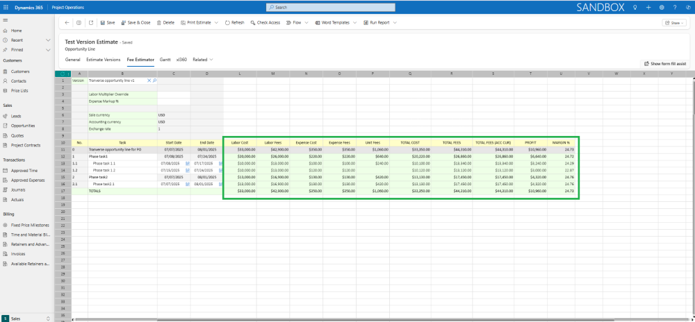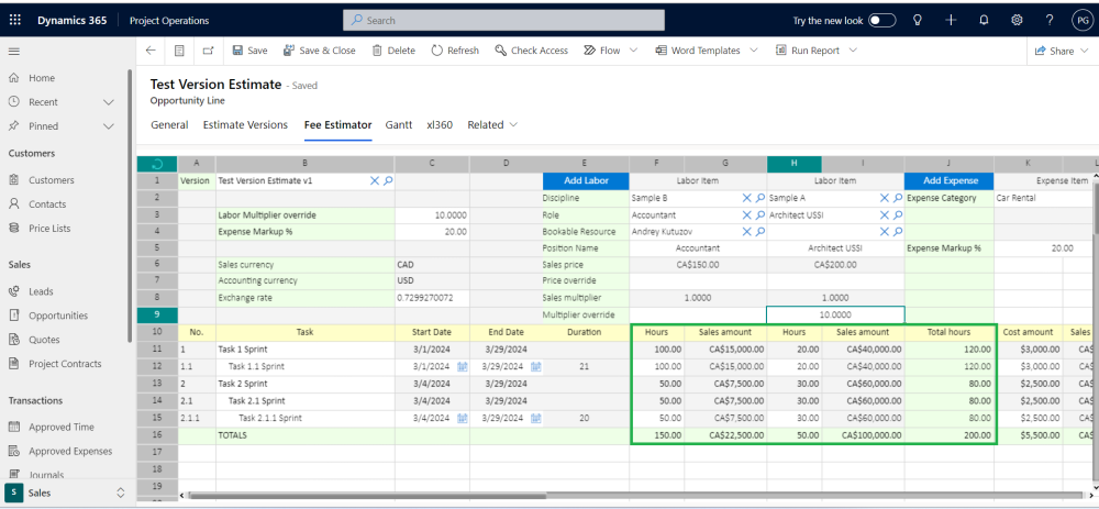 The Fee Estimator will help users to define project estimates and budgets for different phases. They can switch between versions to build estimates in one place and make changes easily in the Fee Estimator Spreadsheet. It ensures all estimates are stored in Dataverse for future reference and can be used during project execution.Overall, this new functionality will make the estimating process more efficient and organized for Sales Team.