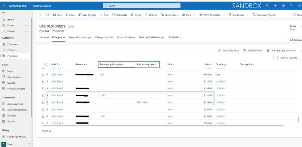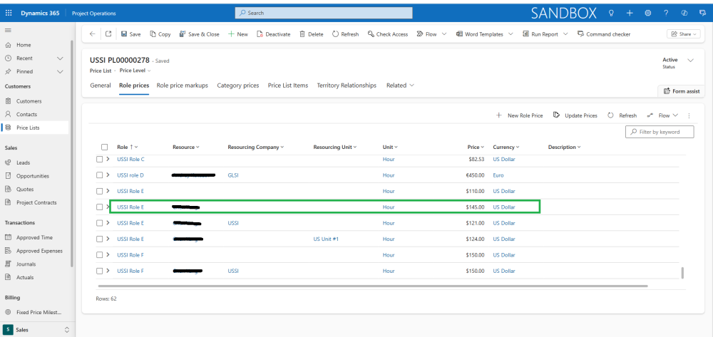 - Role prices in the cost‑price list are now set based on a combination of role, resource, and resourcing company (or unit). These role prices affect only the fee estimator’s calculations. They do not affect WBS, effort allocation, and are not synced with the F&O cost‑price list.