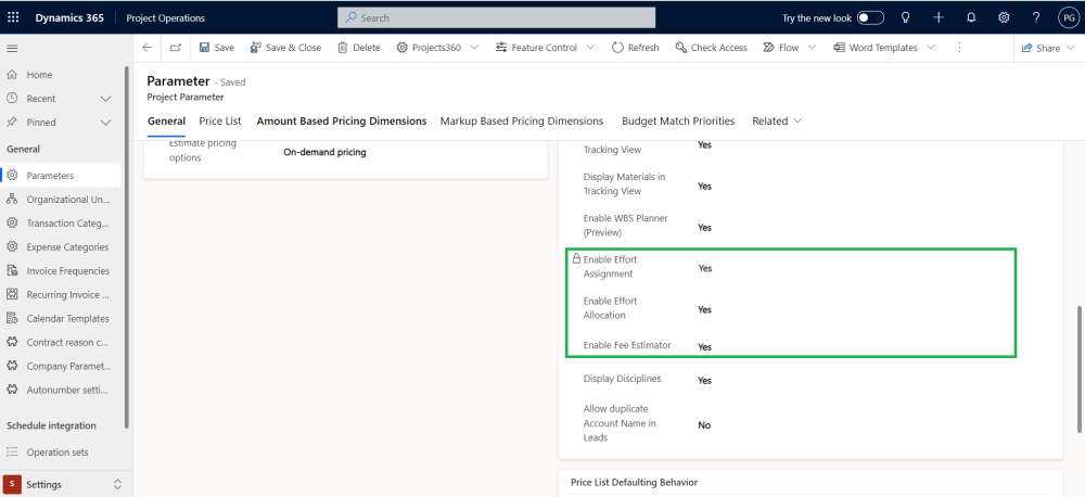 Go to Settings > General > Parameters -> Project360 -> Resource Pricing Dimension for Fee Estimator