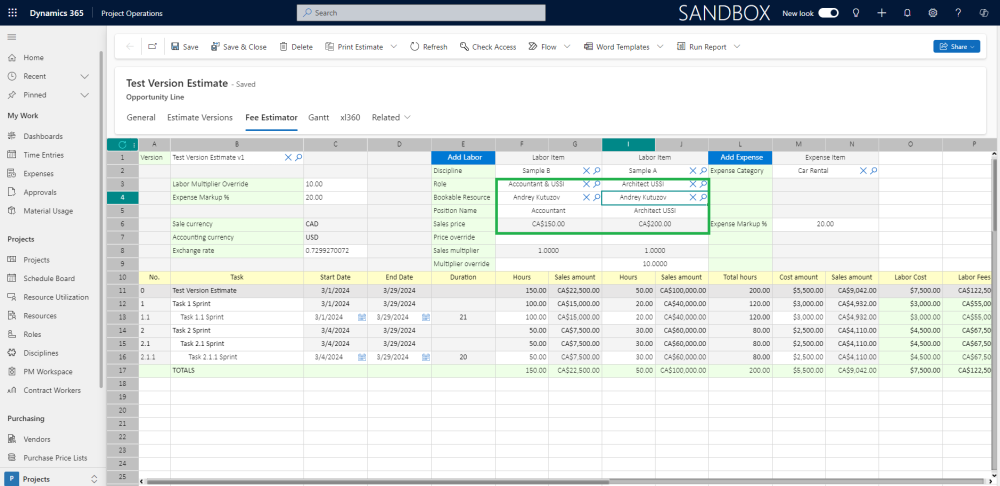 This feature allows users to assign same Bookable Resource multiple times within a task in the fee estimator. Users can assign the same resource with different roles, and the cost and sales prices will vary based on the assigned role.