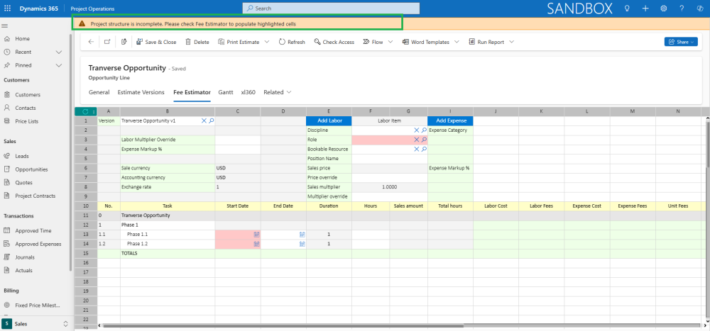 This enhancement alerts users when an incomplete project structure is detected in Fee Estimate versions while editing the Fee Estimator.
