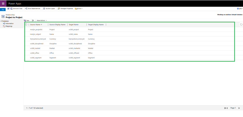- Once the Solution is open, go to the target table: Project(Marketing Project).