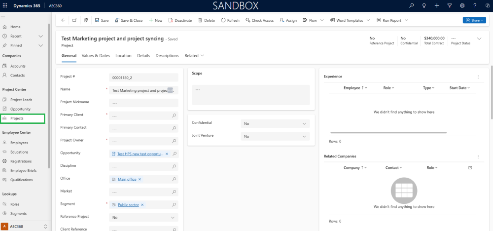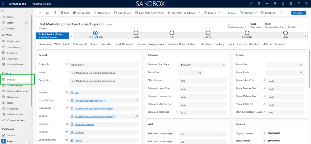 With this integration in place, creating a project in Project Operations can automatically trigger the creation of a corresponding Marketing project. All mapped fields are transferred during this process, eliminating manual data entry and streamlining project setup across departments.