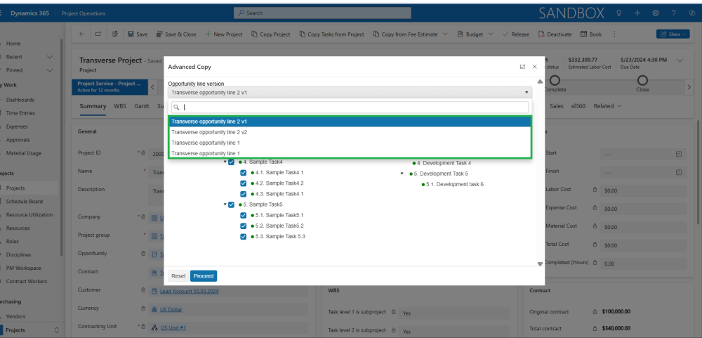 - It also enhances the “Copy from Fee Estimate” functionality, enabling users to select estimate versions from any opportunity line linked to the project.