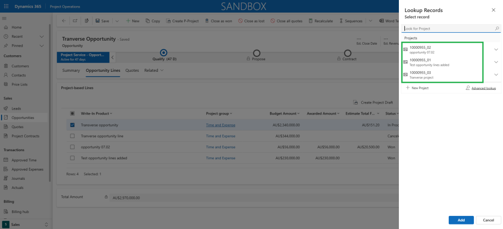 - It enhances the “Close as Won” process by allowing multiple opportunity lines to be linked to the same project, ensuring that multiple contract lines can be created within the existing contract.