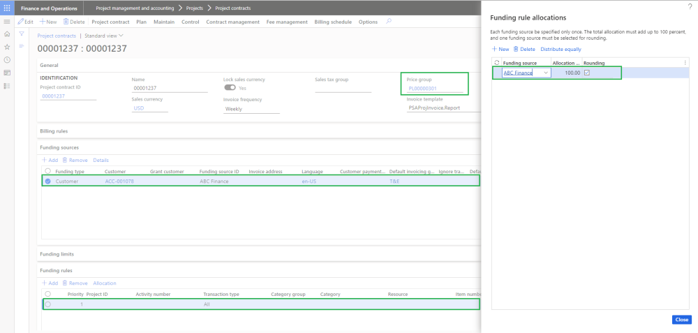 Record gets created in Funding rules tab > Allocation with below specifications in Finance and Operations:
