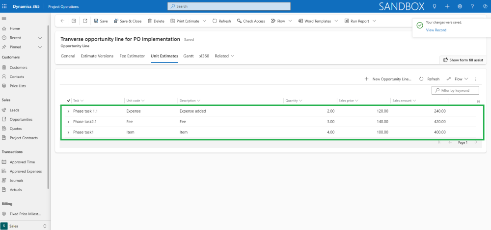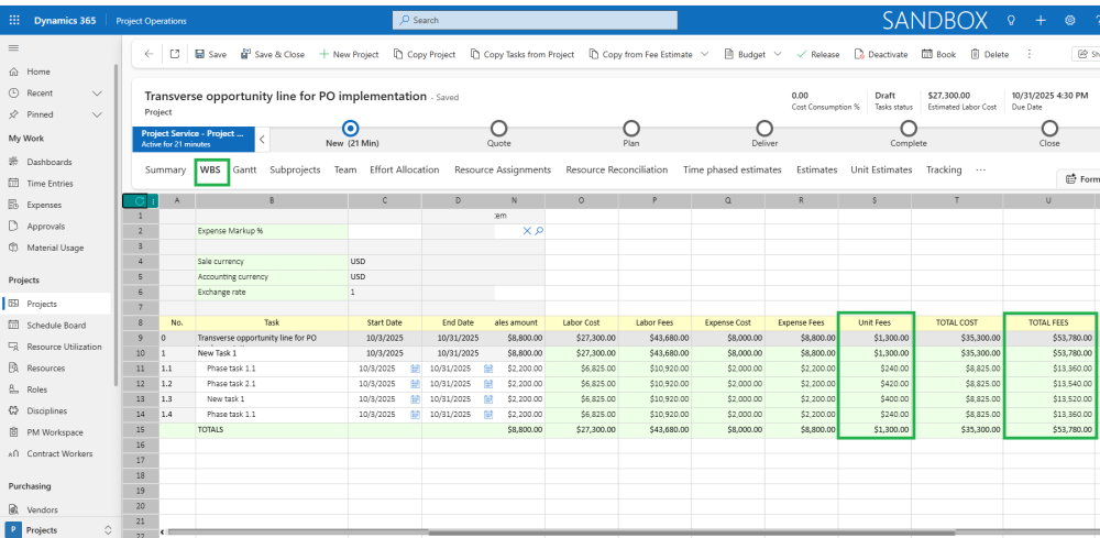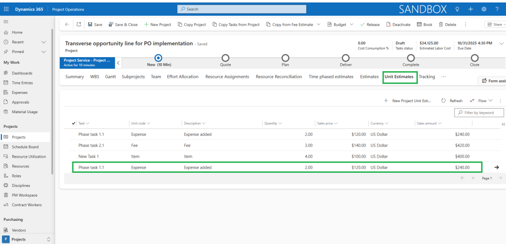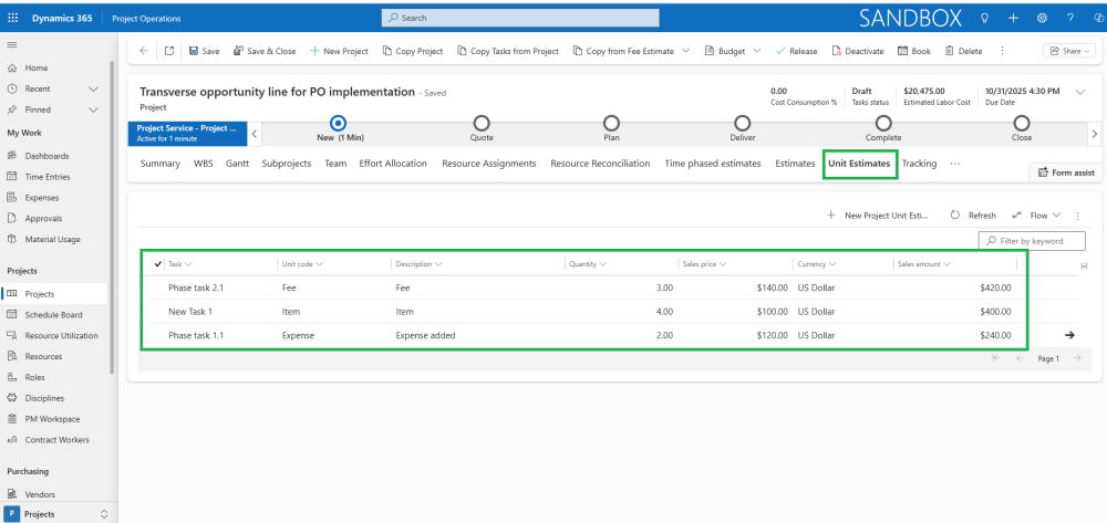 - Creates new Project Unit Estimates when copying Opportunity Line Fee Estimates, ensuring that all related unit estimates are automatically generated for the project.