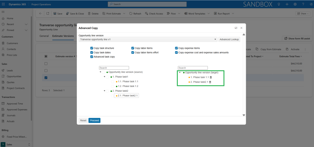 - Copies the complete task structure along with all associated Unit Estimates linked to the selected Estimate Version.