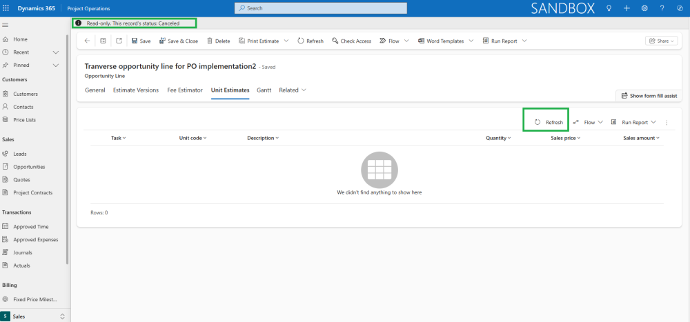 - This grid is editable only when the Opportunity Line is in an Active state. If the Opportunity Line is marked as Closed as Lost, users will not be able to create or modify Unit Estimates.