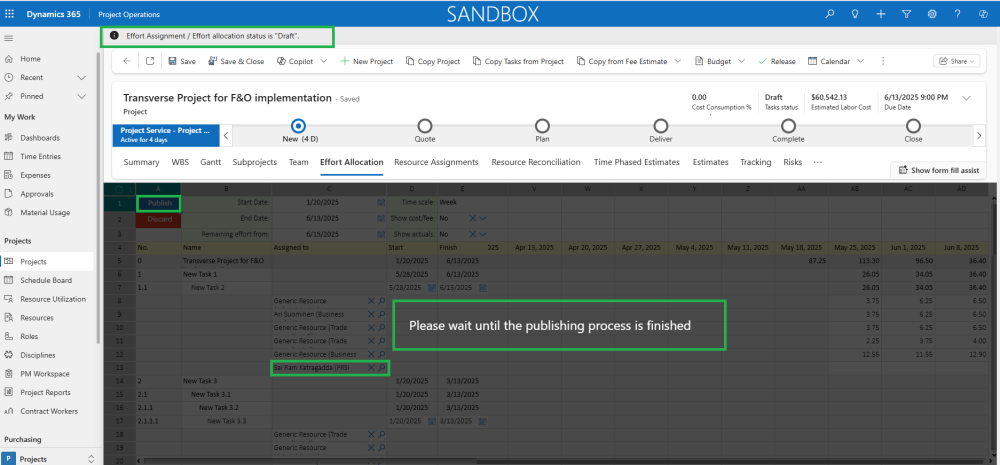 - When assigning new or existing team members in the Effort allocation spreadsheet, the system now automatically updates the Resource Assignment table during publishing, even if there are no changes made to the effort hours.