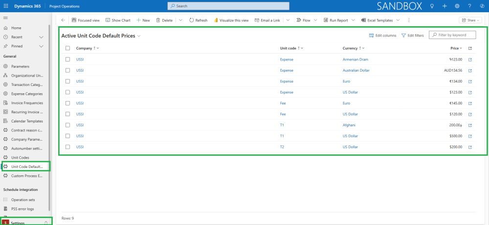 This feature allows users to set default prices for Unit Codes in Project Operations.