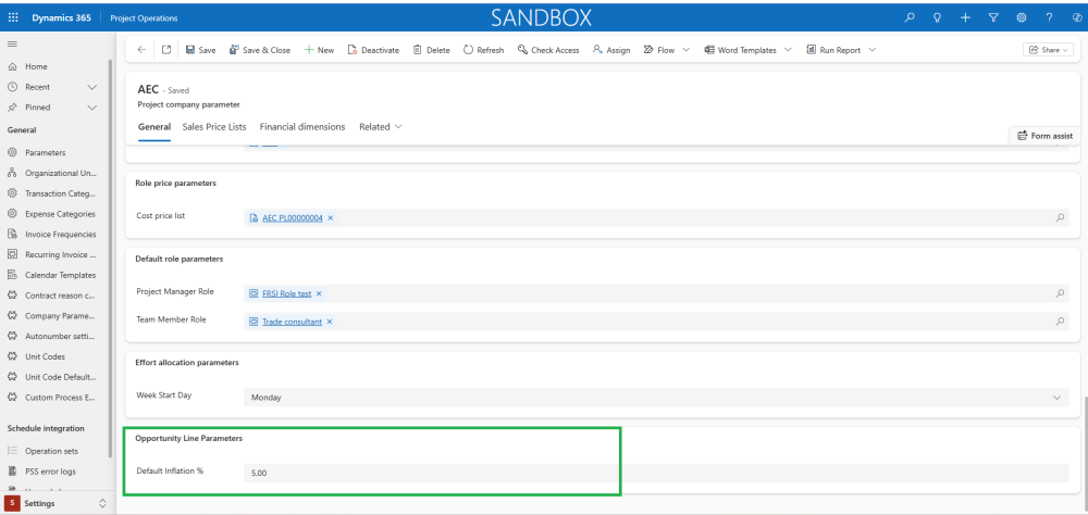 Go to Settings > General > Project Company Parameters -> General -> Opportunity Line Parameters -> Default Inflation %