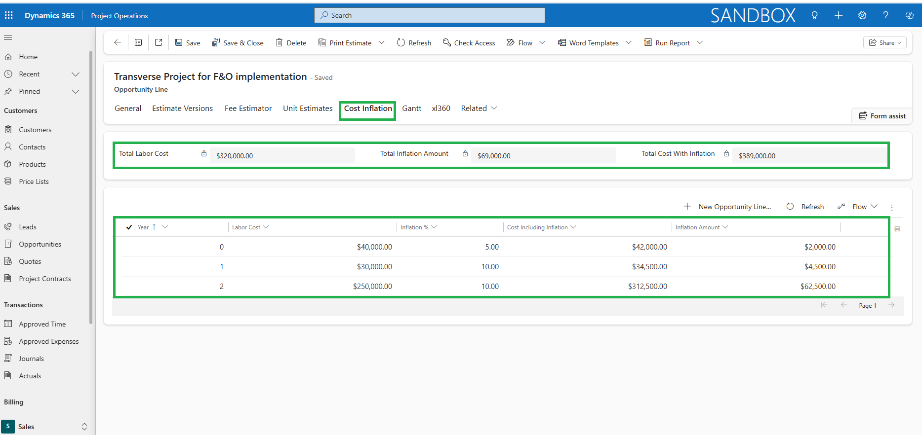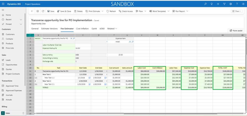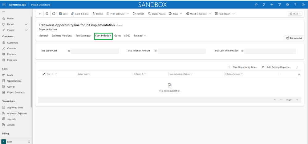 - A new grid for managing Cost Inflation is available on the Opportunity Line form, accessible under a newly added tab labeled Cost Inflation.