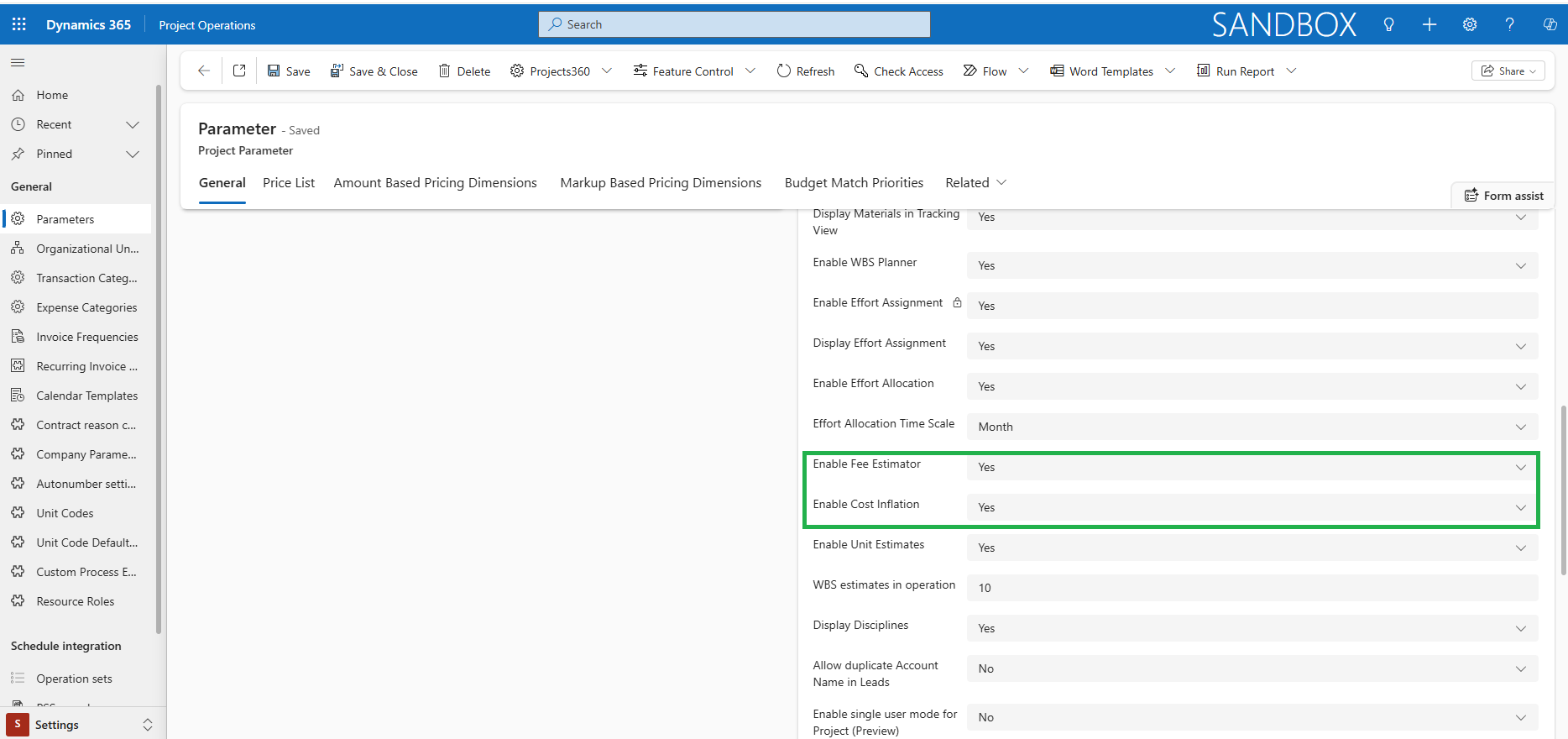 | Enable Cost Inflation | Set as “Yes” to activate the projects360 “Cost Inflation” tab within the Opportunity Line form. |