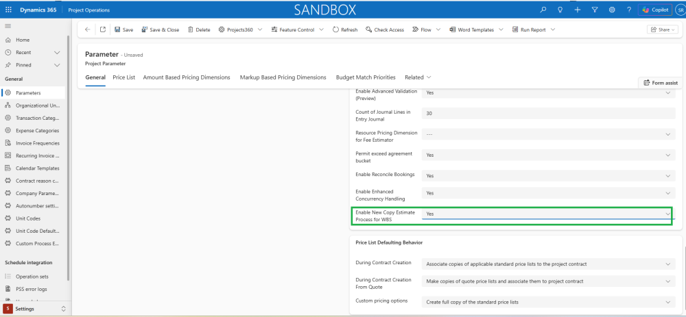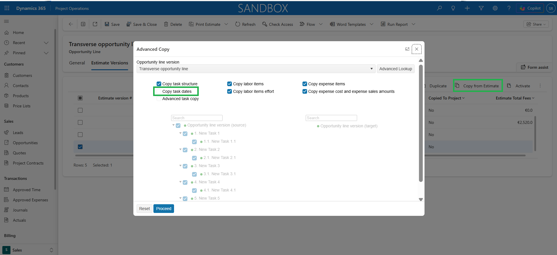 This enhancement sets the ‘Copy task dates’ option to ‘No’ by default instead of ‘Yes’, reducing the need for users to change it manually each time they copy estimates on the Opportunity line estimate versions.