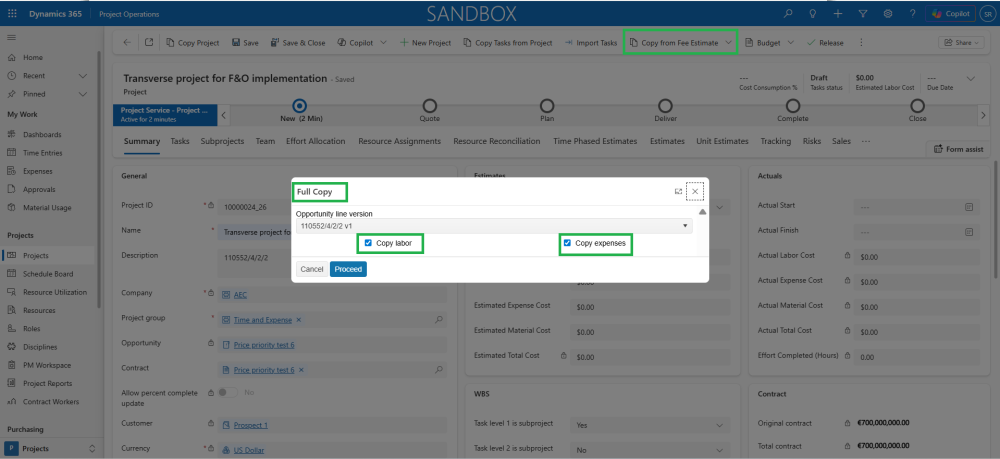 This feature lets users copy fee estimator versions to the WBS project much faster.