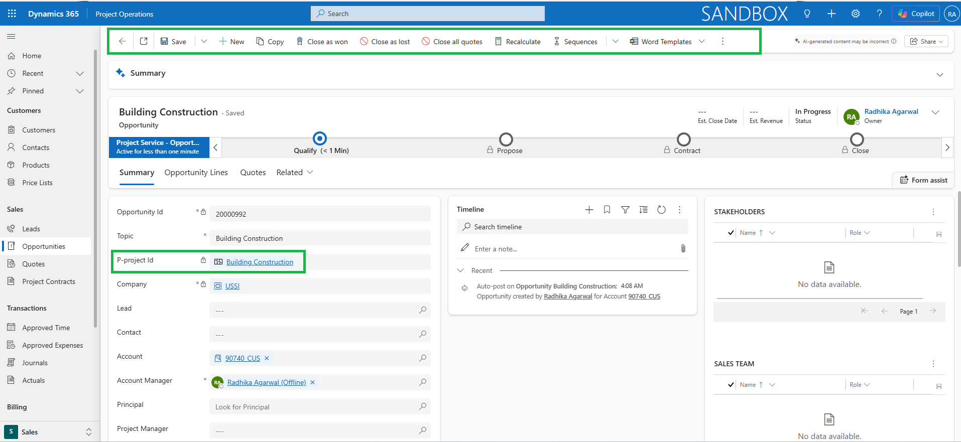 This enhancement makes the ‘Create P-Project’ button hidden on the Opportunity once the P-Project is already created.